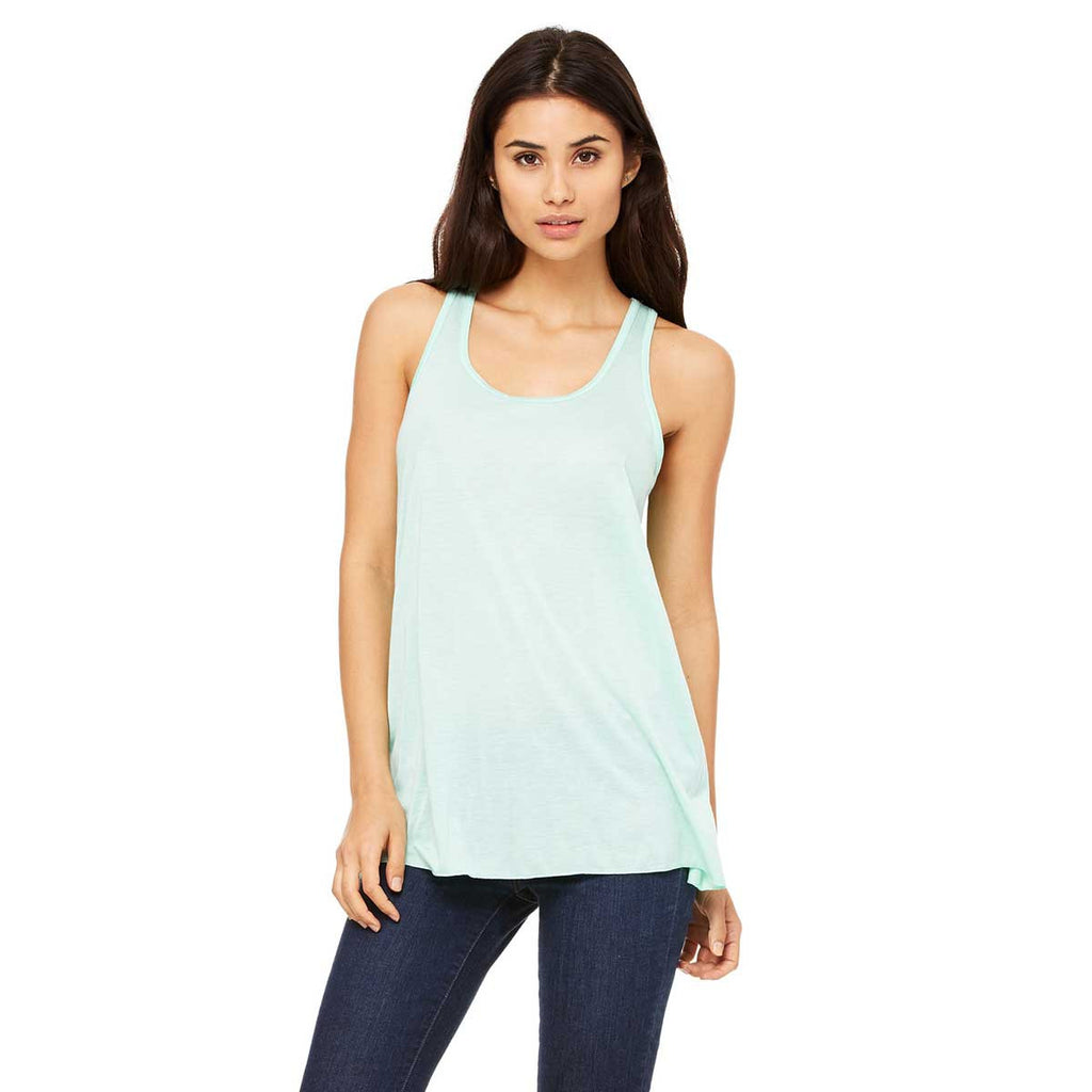 Tank tops rarely go hand in hand with stylish design, but the Bella + Canvas Women's Mint Flowy Racerback Tank changes the tank design paradigm. The merrowed bottom hem and easy, loose fit make the tank a hit among fashion conscious professionals that need to let off a little steam after work. Attach your corporate logo to the tank for increasing brand awareness, as you mingle on the deck of a popular restaurant. Side seam stitching keeps the tank intact years beyond the average tank top lifespan. This tank contains 65% polyester and 35% viscose to deliver superior long lasting performance.