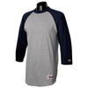 The Champion Tagless Raglan Grey/Navy Baseball T-Shirt is extremely lightweight and breathable.?Made with 100% cotton, it has 3/4 length sleeves, double-needle stitching on the sleeves and bottom hem, and a logo on the left sleeve.