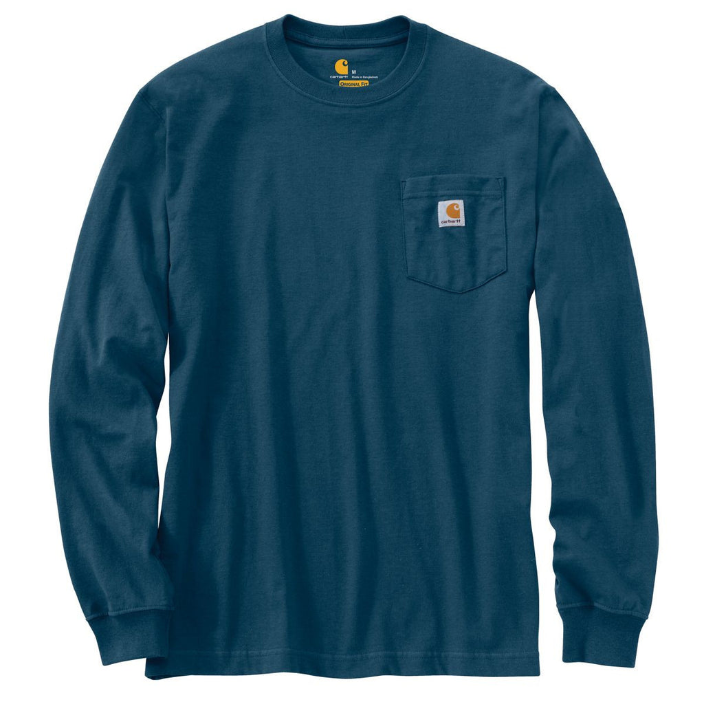 After a brisk workout, you need a quick turn around time to clean your Carhartt Men's Stream Blue Workwear Pocket Long Sleeve T-Shirt. Proprietary FastDry technology makes these shirts the quickest drying apparel in our extensive inventory. This lightweight shirt is perfect for long cycling rides and extended days of hiking through the backcountry. The highly durable 100% cotton jersey knit removes perspiration from the skin to keep you cool under the hottest conditions. Rugged Flex technology ensures ease of movement for navigating the most rugged terrain. Use the large imprint area to add a custom logo that promotes your company.