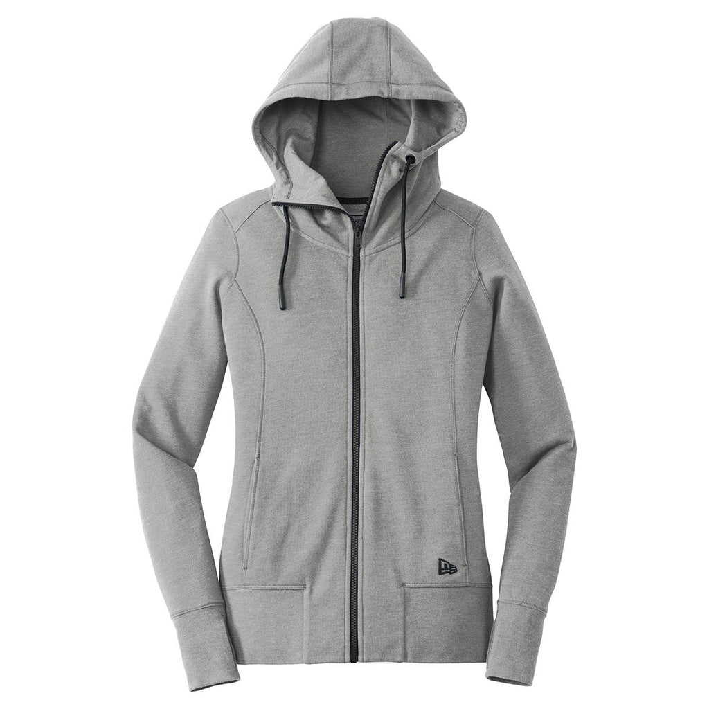 With a custom logo, the embroidered New Era Women's Shadow Grey Heather Tri-Blend Fleece Full Zip Hoodie offers you a powerful platform to promote your business products and services. Add your company logo on the large imprint area to generate buzz for your brand at business seminars. The lightweight cotton, polyester, and rayon fabric delivers durability, while not sacrificing any of the comfort features you've come to expect from corporate apparel. Enjoy the stylish wide rib knit hem and heathered fabric that will dazzle everyone you meet. Your employees will be just as happy to wear this hoodie on their business travels as they are after hours around the house.