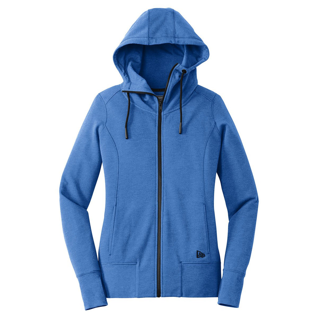 With a custom logo, the embroidered New Era Women's Royal Heather Tri-Blend Fleece Full Zip Hoodie offers you a powerful platform to promote your business products and services. Add your company logo on the large imprint area to generate buzz for your brand at business seminars. The lightweight cotton, polyester, and rayon fabric delivers durability, while not sacrificing any of the comfort features you've come to expect from corporate apparel. Enjoy the stylish wide rib knit hem and heathered fabric that will dazzle everyone you meet. Your employees will be just as happy to wear this hoodie on their business travels as they are after hours around the house.