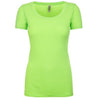 there's the usual tee shirt, and then there's the scoop neck. The two are not as alike as you may think. Sure, the tee shirt is a casual option. So is what you see here. But what you see here is great for layering, for more advanced sartorial choices, and simply to enjoy around the house or while out and about. Let's see any ordinary tee do what the Next Level WoMen's Neon Green Scoop Neck Tee can do, then we'll be impressed. All that's missing from this picture? Your own custom logo put right on the front so you can rep your brand while you rep some serious style.