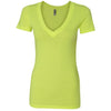 Getting a tee shirt to feel comfortable isn't always easy. You need quality fabric, exceptional design, and even enough sartorial know-how to feel confident wearing it out and about. With the Next Level Women's Neon Yellow Deep V-Neck Tee, however, you get it all in one package-all with the nice touch of a deep V neck. Simply add your custom logo to this deep V tee to experience the most possible in brand awesomeness from a single shirt-and we at Merchology can help you out with that. Unlike the normal crewneck tee, you'll find more versatility here for repping your brand.