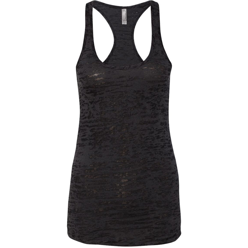 Take a closer look at the Next Level Women's Black Burnout Racerback Tank. This isn't only a tee for the occasional use around the house, only to end up being used as a rag. No, this is a tee that delivers on it all: comfort, durability, and even style. Yes, we included the word "style" when describing a tee. If that doesn't tell you all you need to know about this item, then we don't know what to tell you. Except that you can add on your custom logo with Merchology.