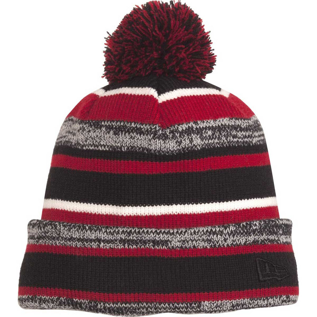 Don't sit on the sidelines when it's time to make a strong fashion statement at an outdoor athletic competition. Wear the sleek New Era Black/Scarlet Sideline Beanie and expect people to come and ask, "Where did you get that beanie." With multiple colored heather stripes that evoke fond memories of winter, the beanie contains a polyester fleece lining that keeps your ears warm. The 100% acrylic shell handles everything Old Man Winter dishes out, including sleet pellets and wet, heavy snow. Attach your corporate logo to the beanie to let everyone know that your company stands for quality and innovation.