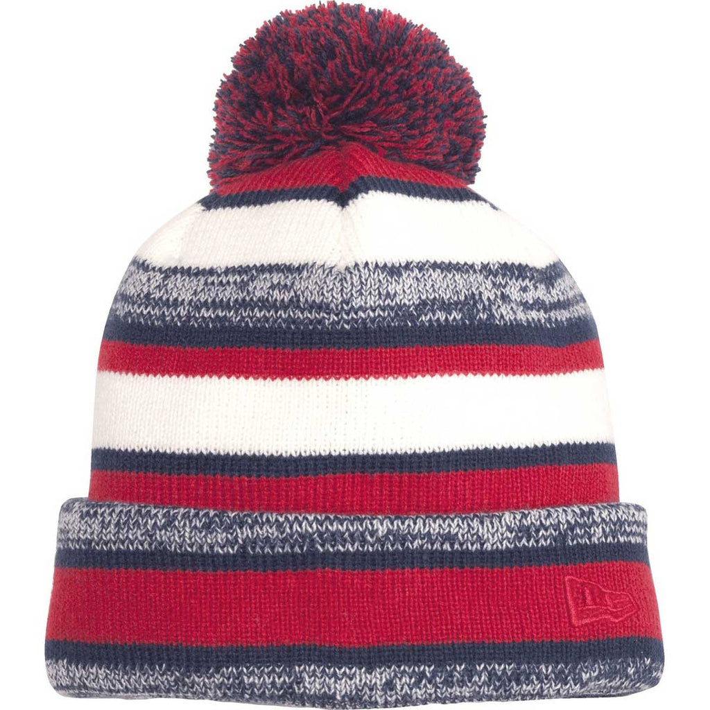 Don't sit on the sidelines when it's time to make a strong fashion statement at an outdoor athletic competition. Wear the sleek New Era Red/Navy Sideline Beanie and expect people to come and ask, "Where did you get that beanie." With multiple colored heather stripes that evoke fond memories of winter, the beanie contains a polyester fleece lining that keeps your ears warm. The 100% acrylic shell handles everything Old Man Winter dishes out, including sleet pellets and wet, heavy snow. Attach your corporate logo to the beanie to let everyone know that your company stands for quality and innovation.