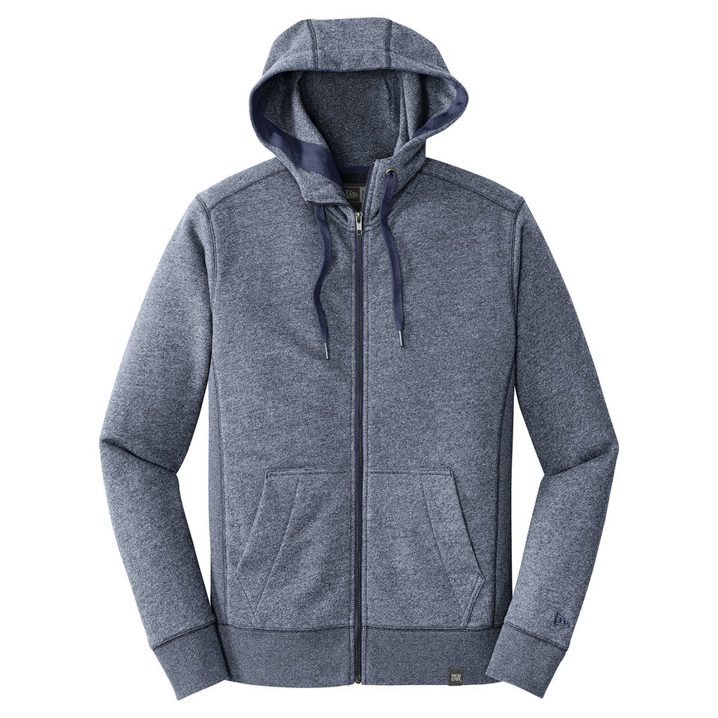 Keep yourself protected against the worst weather conditions by wearing the embroidered New Era Men's True Navy Twist French Terry Full-Zip Hoodie. The lined and twill-taped three-panel hood ensures you remain warm and dry on even the coldest days of the year. Half cotton and half polyester produce a super soft fabric that resists rips and tears. Rib knit cuffs and side panels enhance the stylish design of the hoodie. Attach your corporate logo on the large imprint area to reach more potential customers. With its classic design, polished look and high-quality construction, this hoodie from New Era will be around for many years to come.