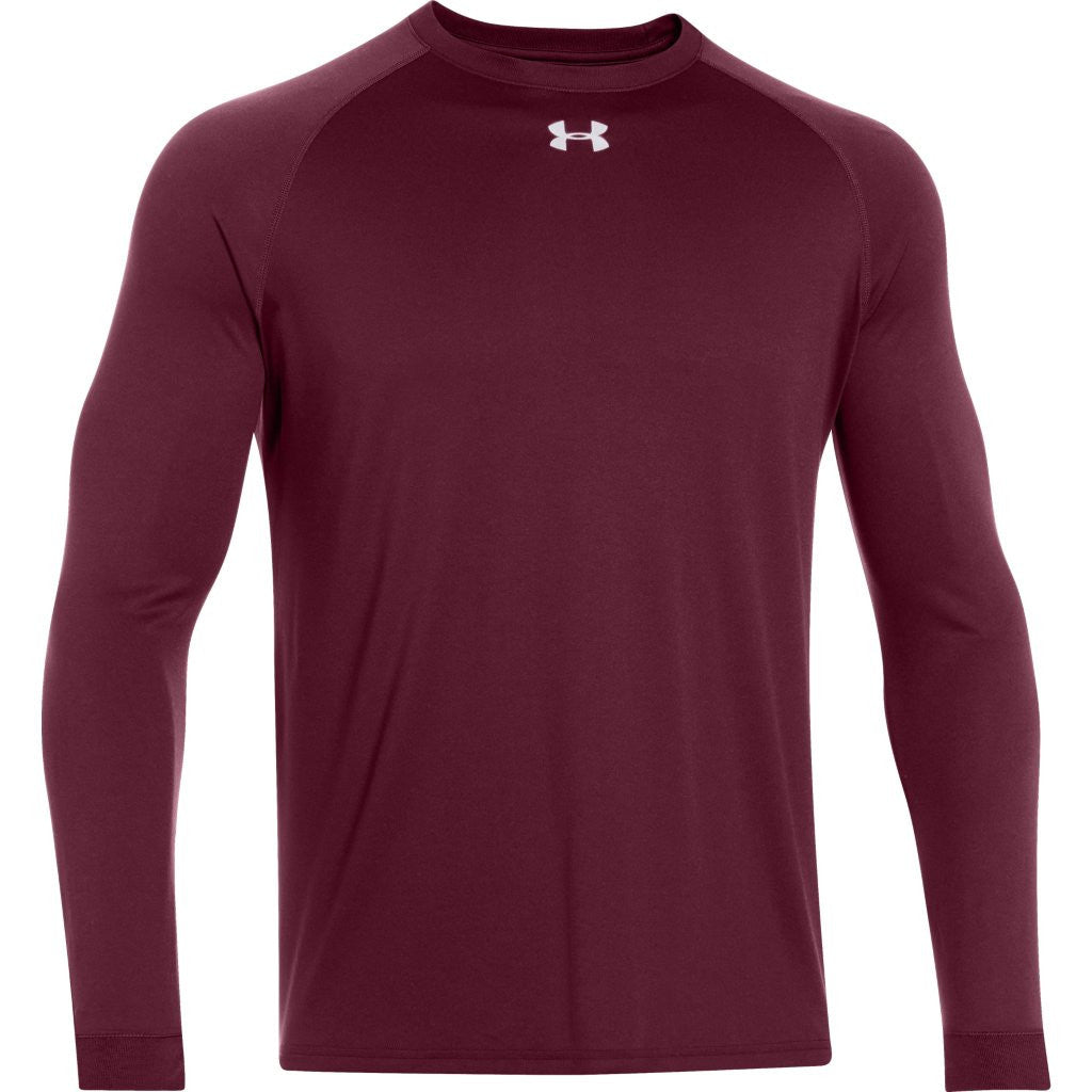 >It should be anti-odor, capable of handling a morning jog or an intense coaching session. It should also feature superior moisture transport, wicking away sweat so you don't have to deal with wetness all day long. The Under Armour Men's Maroon L/S Locker Tee fits the bill, providing comfort as well as strength, all packed up in a durable polyester fabrication that's as comfortable as it looks. Add your company logo to this piece and you'll be ready for any season. Embroidery is also available on this product, please inquire with a Merchologist.