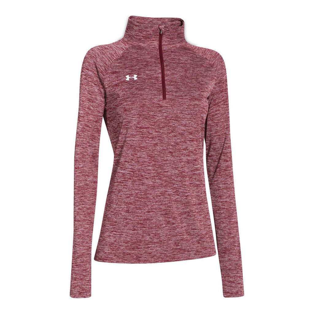 If you're interested in the warmth and protection of a 1/4 but not the usual bland style, there may be no better option for you than the Under Armour Women's Tropic Cardinal Twisted Tech Quarter Zip.