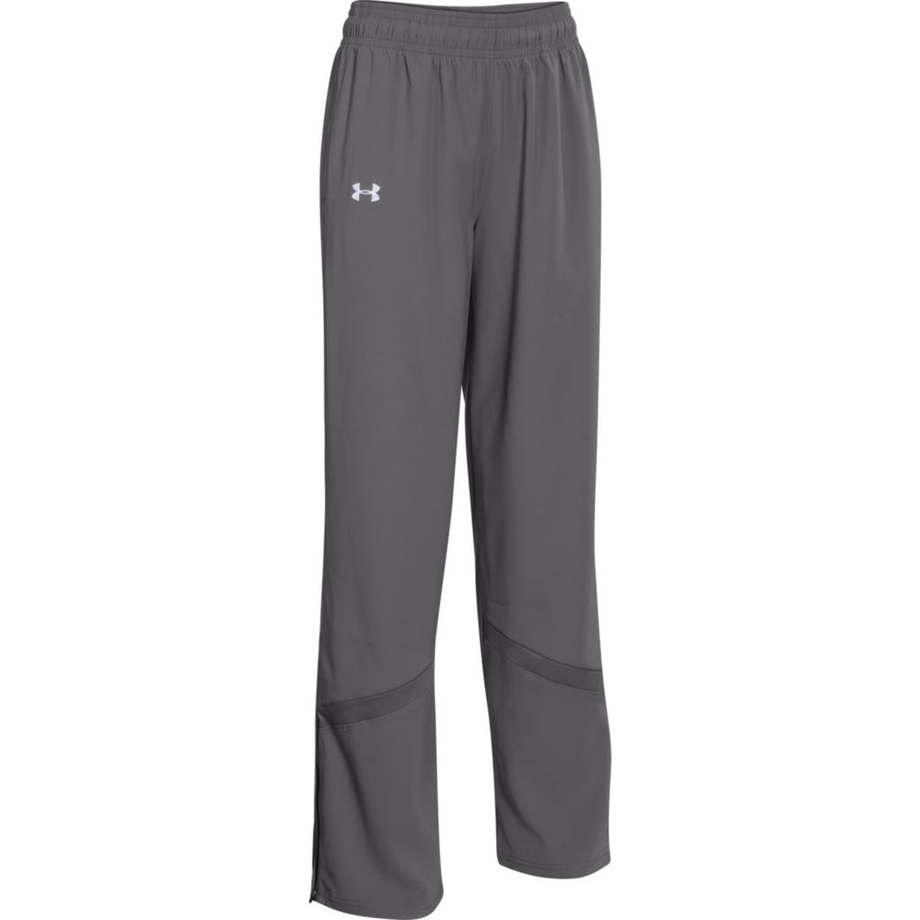 In short, you need this pair of Under Armour Women's Graphite Pre-Game Woven Pants. Not only do they offer all of the above, they include features like reverse fabric leg insets, open side seam hand pockets, and a water repellant system to help keep you try. Add your team's logo to these pants to represent them at games, at practice-or simply around the house.