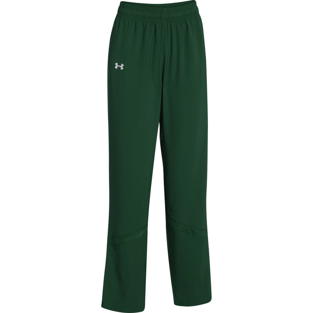 In short, you need this pair of Under Armour Women's Green Pre-Game Woven Pants. Not only do they offer all of the above, they include features like reverse fabric leg insets, open side seam hand pockets, and a water repellant system to help keep you try. Add your team's logo to these pants to represent them at games, at practice-or simply around the house.