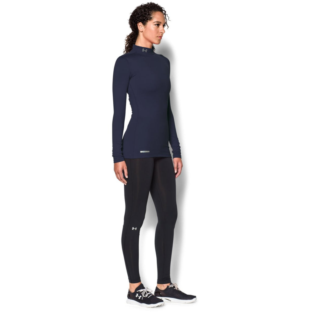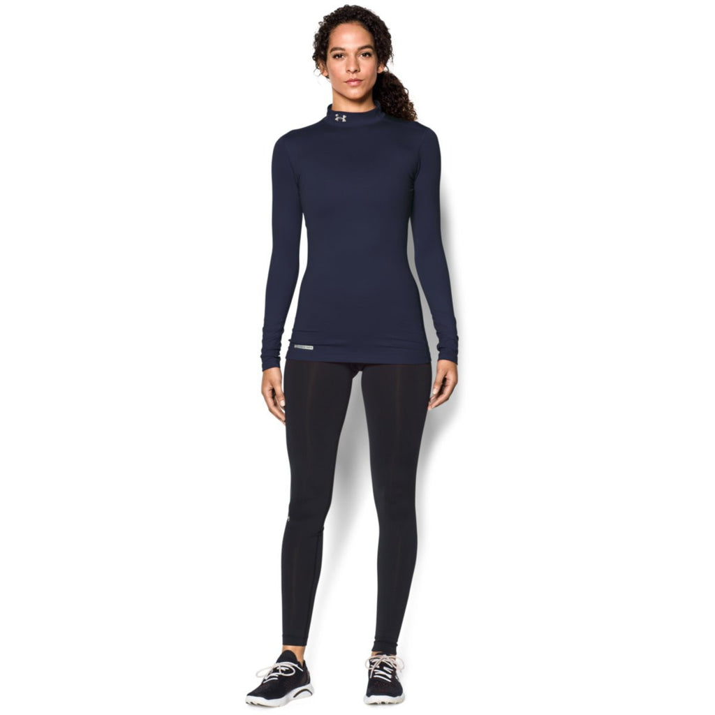 Want something a little more snug but without that “compression” feel that many people don’t enjoy? Then you’ve met the best of both worlds: this Under Armour Women’s Navy ColdGear Fitted L/S Mock has everything you need to stay warm and mobile without ever stifling.
